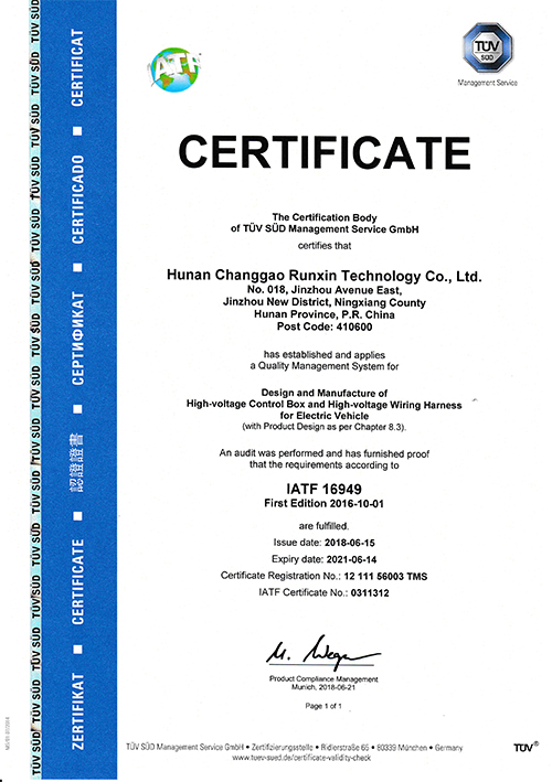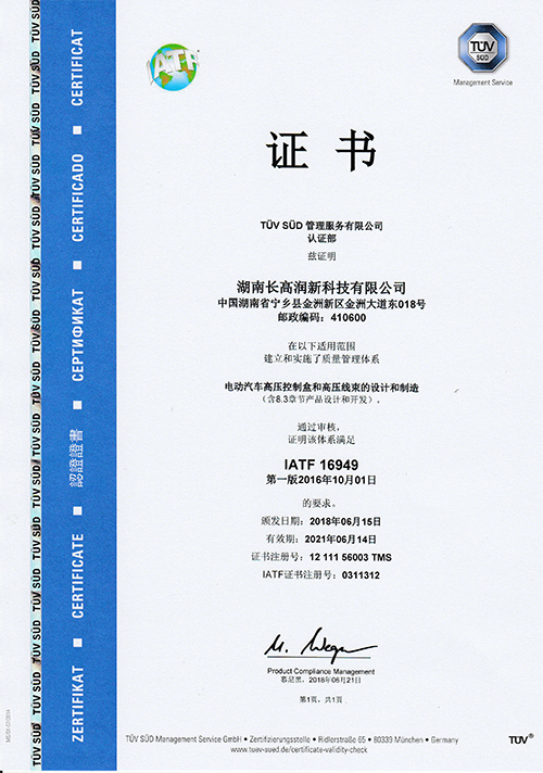 (本网通讯员 鲁欢)为进一步规范生产、科研、销售操作流程,有效控制风险,提高投资收益,形成标准化经营、规范化管理的模式,长高润新于近日顺利通过了TUV南德 IATF16949质量体系认证。