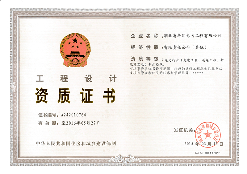 近日,我公司电力行业(新能源发电)专业乙级资质获得湖北省住房和城乡建设厅核准,成为此次勘察设计资质审核通过的唯一一家电力行业(新能源发电)资质企业。新能源发电专业资质的通过,是我公司继送变电工程设计乙级资质、送变电工程专业承包二级资质之后的又一突破。